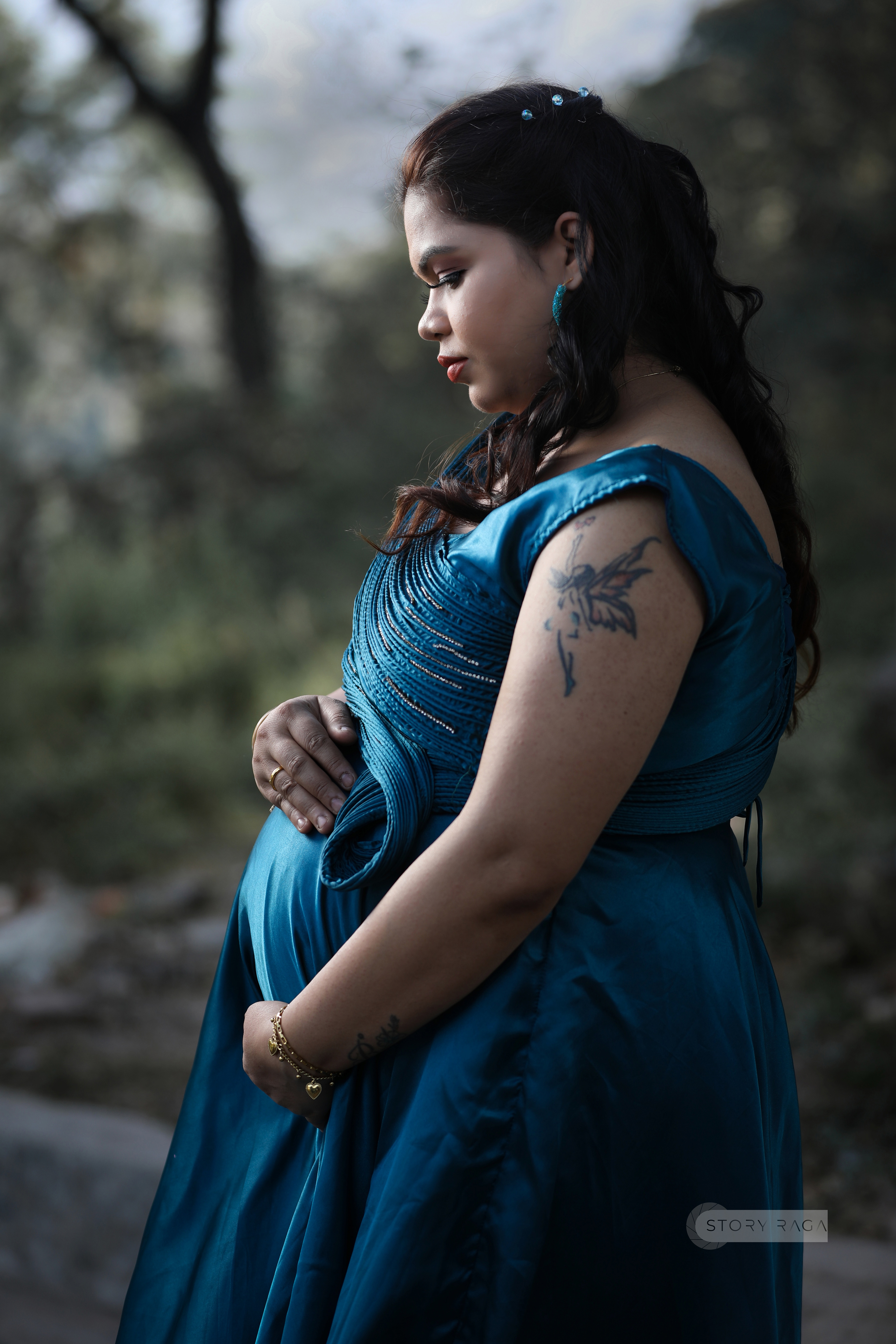 In Full Bloom is a maternity editorial that celebrates strength, grace, and transformation. Shot in natural light, the series focuses on form, movement, and quiet confidence rather than posed emotion. The flowing gown creates a sense of scale and continuity, echoing the changes within the body, while the outdoor setting keeps the narrative grounded and real. Each frame reflects a moment of becoming calm, powerful, and unapologetically present. This project views maternity not as fragility, but as fullness.